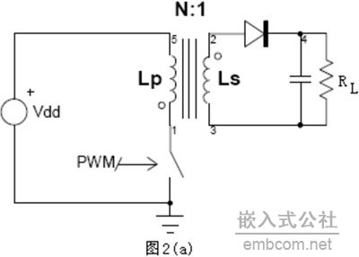 圖2所示FLYBACK拓撲結構的轉換器,通過對它的計算分析來進行進一步的解釋。